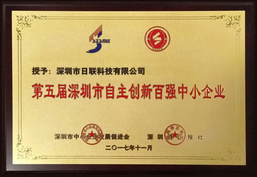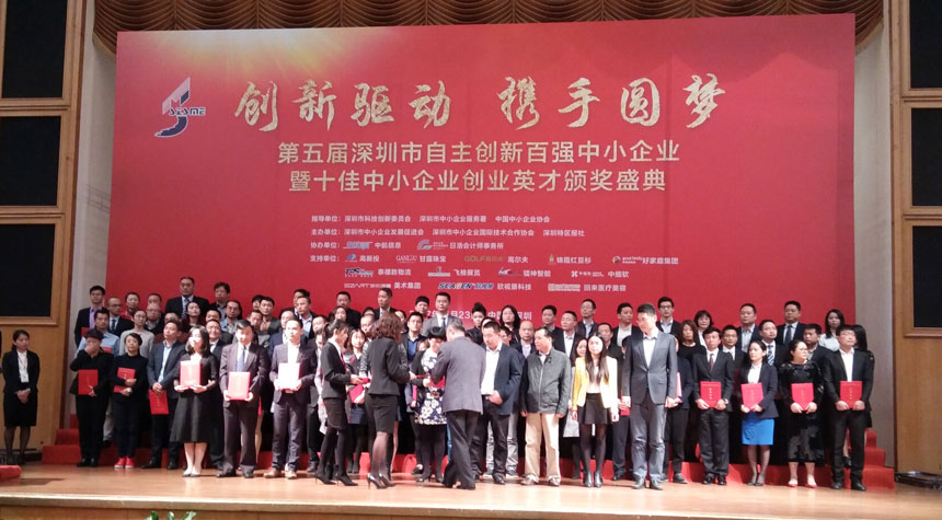 2017年11月23日下午,由深圳市科創(chuàng)委、深圳市中小企業(yè)服務(wù)署、中國(guó)中小企業(yè)協(xié)會(huì)指導(dǎo),深圳市中小企業(yè)發(fā)展促進(jìn)會(huì)與深圳特區(qū)報(bào)社聯(lián)合主辦的“創(chuàng)新驅(qū)動(dòng)·攜手圓夢(mèng)--第五屆深圳市自主創(chuàng)新百?gòu)?qiáng)中小企業(yè)暨十*中小企業(yè)創(chuàng)業(yè)英才頒獎(jiǎng)盛典”在五洲賓館盛大舉行,日聯(lián)科技等百家企業(yè)獲得了該榮譽(yù),深圳市委市政府相關(guān)領(lǐng)導(dǎo),企業(yè)代表、及社會(huì)各界代表出席了本次盛典。