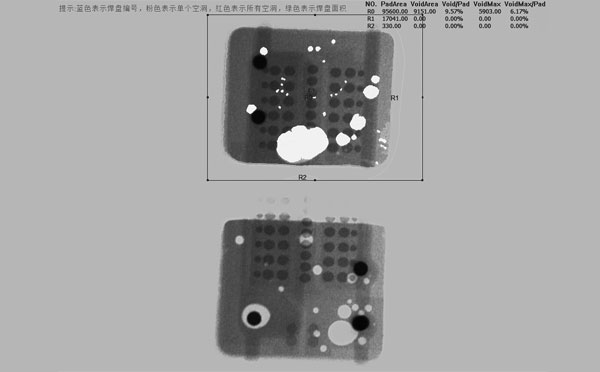 BGA元器件在電焊焊接結(jié)束后,基于其點焊全被元器件本體所覆蓋,所以既沒法選用傳統(tǒng)的目測方法觀察檢測全部點焊的電焊焊接質(zhì)量,也不能應(yīng)用自動光學(xué)檢測設(shè)備對點焊的外觀做質(zhì)量評判。為達到有效的檢測,可選用X-ray檢測設(shè)備對BGA元器件的點焊進行檢測。