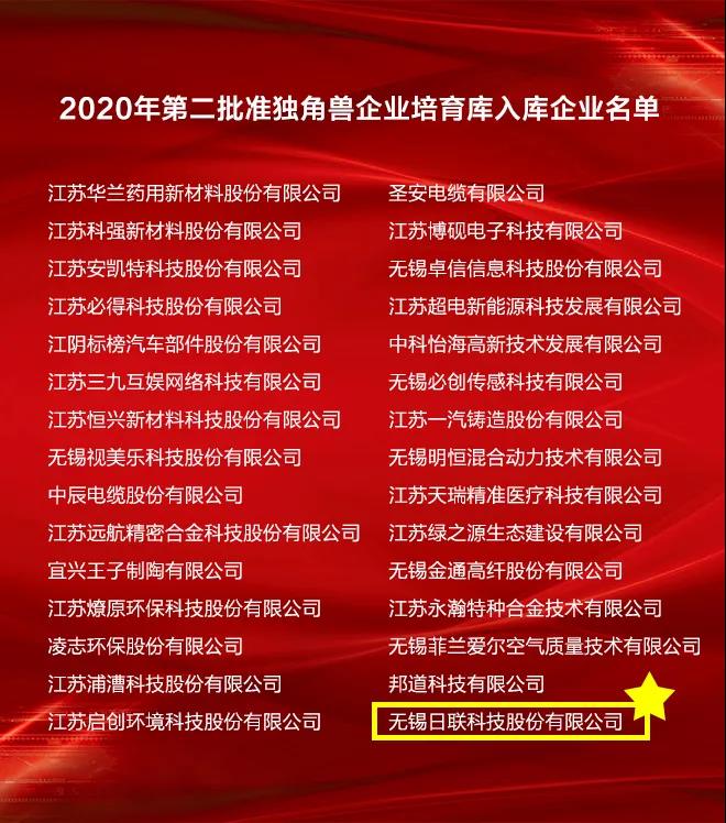 無錫高新區(qū)新增入庫“雛鷹企業(yè)”120家、“瞪羚企業(yè)”33家、“準(zhǔn)獨角獸”企業(yè)3家,日聯(lián)科技榮譽在列“準(zhǔn)獨角獸”企業(yè)。